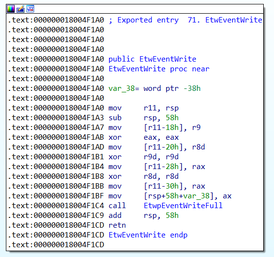 EtwEventWrite before modification: