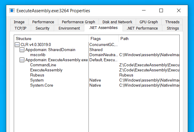 In a previous article we looked at loading malicious code with Assembly.Load() in C#. This technique loads an additional assembly into the existing App Domain of the application. We can observe this behaviour with the following C# Code: